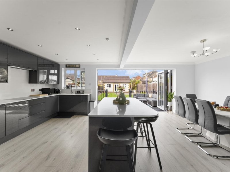 A stunning four bedroom two bathroom chalet bungalow situated on a sough after road and designed exquisitely with high specification throughout the property.